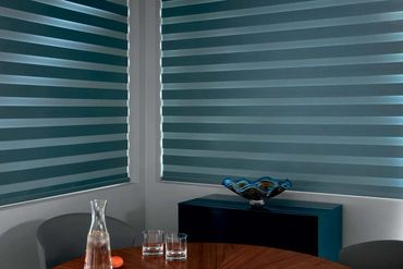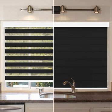 Layered shades (also known as zebra shades) offer a modern take on light control with their alternating bands of sheer and opaque fabrics. When open, the layers align to gently filter light through the sheer material, while closed bands block light for a clean, Elegant look.